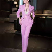 Nueva chaqueta ajustada de un botón con cuello en V profundo para mujer al por mayor y Pantalones rectos adelgazantes de cintura alta, conjunto de dos piezas